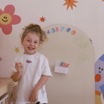 Available in five versatile colors, simply stick the adhesive decal to your wall to create a space where kids can learn, play, and showcase their artwork